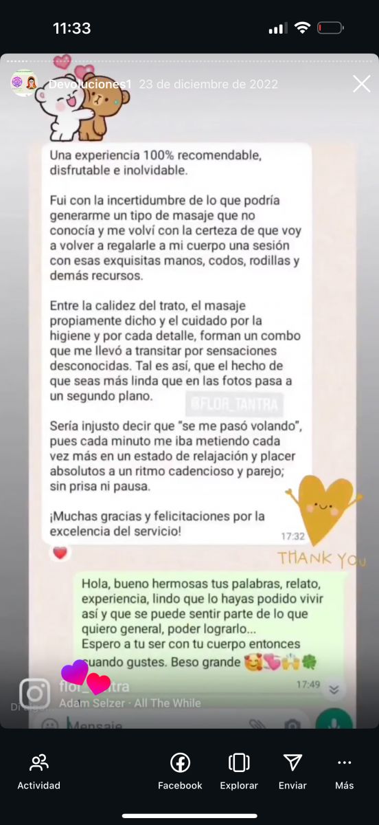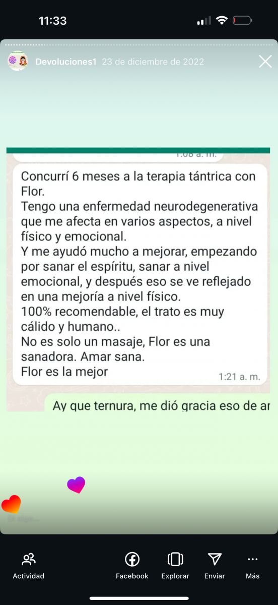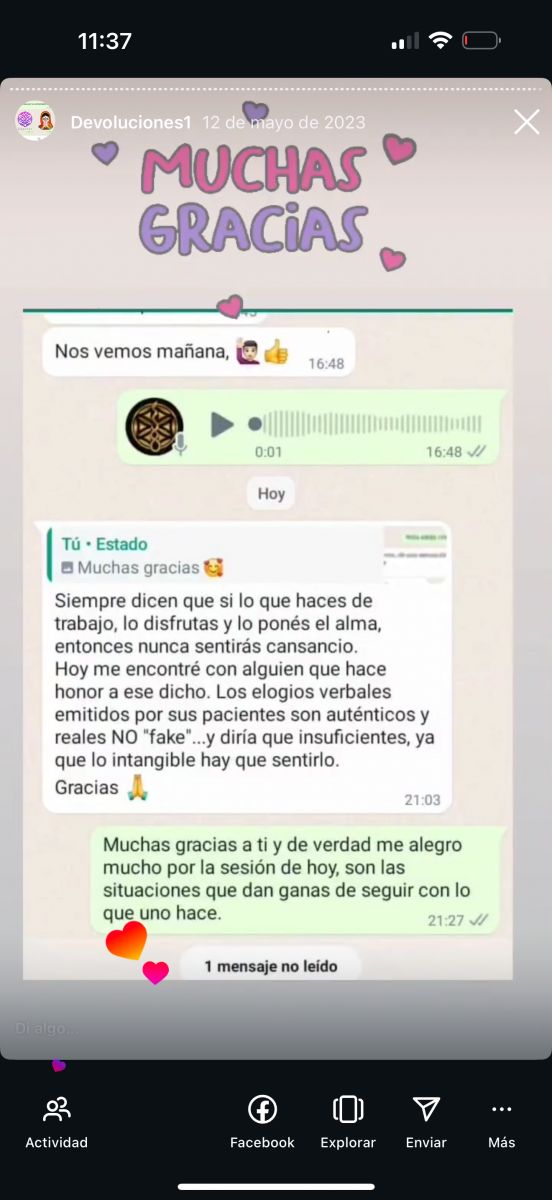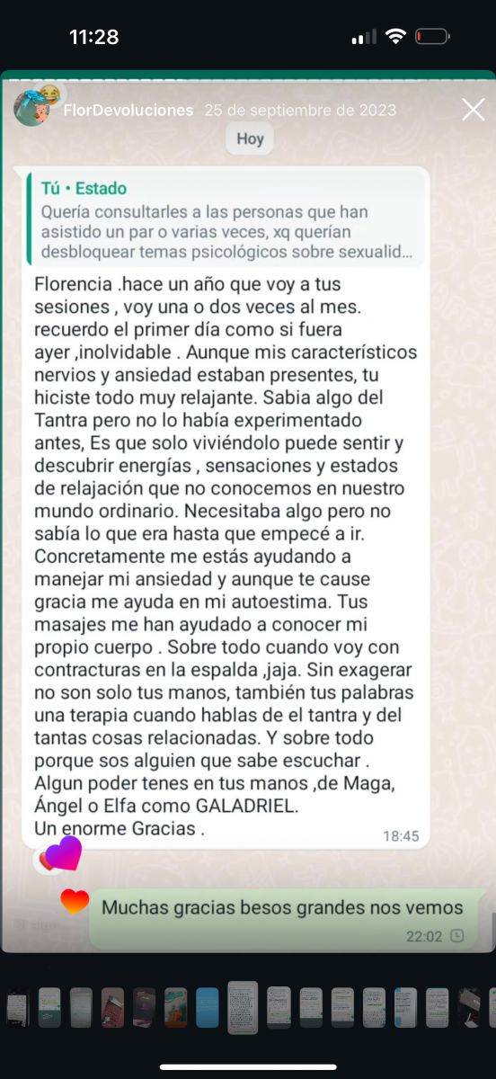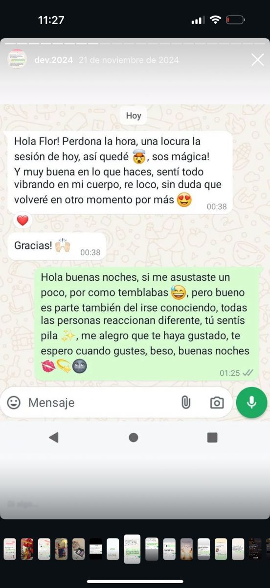 ? En la galería de fotos, vas a encontrar mensajes reales de forma anónima , de las personas que ya han concurrido a mis sesiones —porque no hay mejor currículum que la experiencia viva de quienes se permitieron sentir.